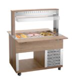 Bartscher Buffetwagen K3110-200U | Hout/RVS/Kunststof | 3 x GN 1/1 x 200 mm. | 2 C – 4 C | Opklare dienbladslides | Verlichting | 1.170 x 1.245 x H 1.510 mm. | 0.34 kW | 230 V | Iep