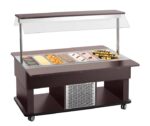 Bartscher Buffetwagen Kids K4110-150W | Hout/RVS/Kunststof | 4 x GN 1/1 x 150 mm. | 2 C – 4 C | Opklare dienbladslides | Verlichting | 1.160 x 1.420 x H 1.200 mm. | 0.349 kW | 230 V | Wenge