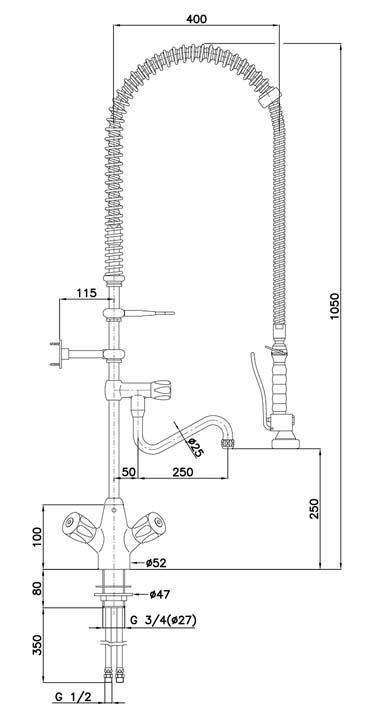 Bartscher Mengzwenkkraan met voorspoeldouche 26 Liter-1801B | Dubbelgreeps | 180 graden draaibaar | 515 x 415 x H 1.430 mm.