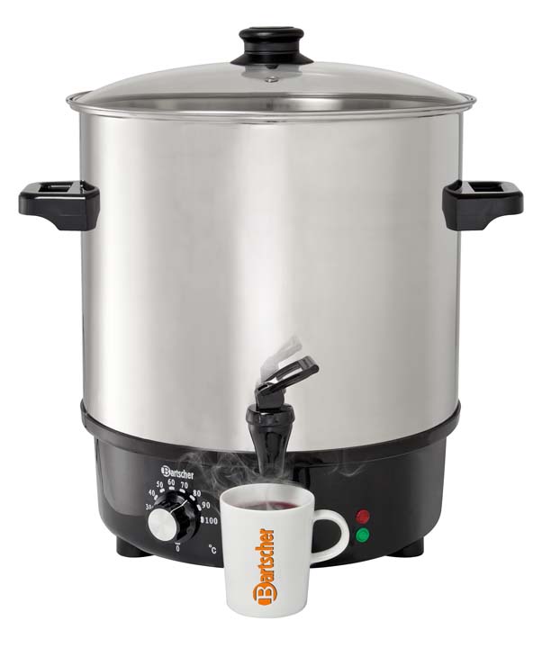 Bartscher Glühweinketel/Heetwaterpan | Chroomnikkelstaal/Kunststof | 30 C – 100 C | 25 Liter | 379 x 420 x H 473 mm. | 2 kW | 230 V