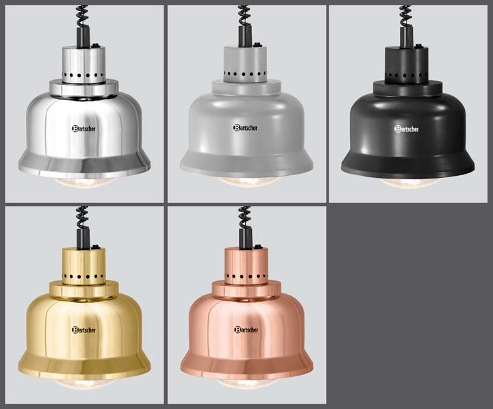 Bartscher Warmtelamp IWL250D CHR | Gecoat staal | Plafondmontage | Kabellengte 650-1.600 mm. | Dia 230 x 250 mm. | 0.25 kW | 230 V | Hoogglans zilver